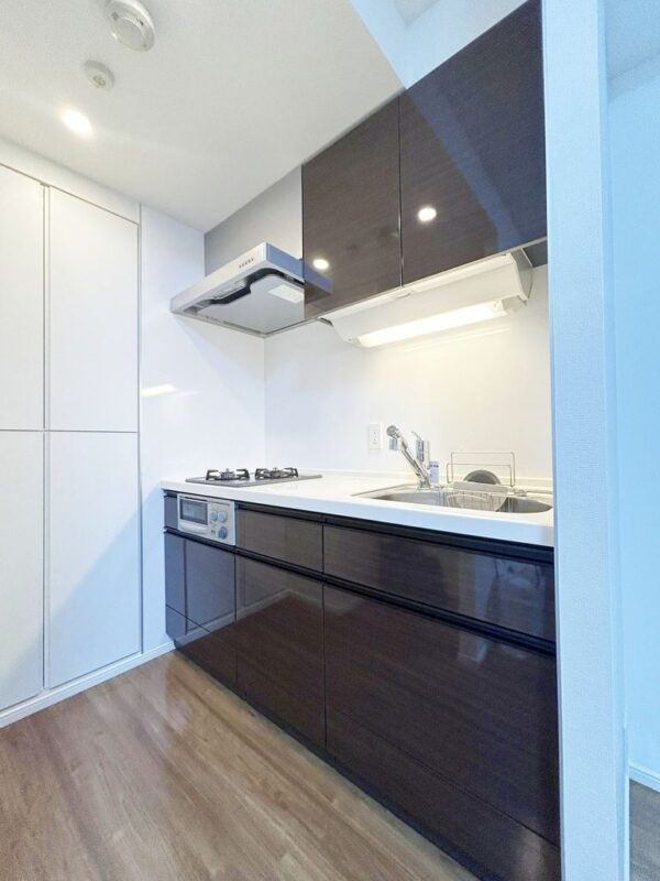 パークリュクス日本橋の専有部設備は、都心型レジデンスとして求められる実用性と快適性を高次元で両立しています。システムキッチンはコンパクトながらも作業スペースが確保されており、自炊を日常的に行う方にも十分対応できる仕様です。調理動線が整理されているため、限られた空間でも効率よく家事をこなすことができます。独立洗面台は朝の身支度を快適にするだけでなく、生活感を抑えた室内演出にも寄与しており、来客時にも好印象を与えます。浴室乾燥機は天候に左右されず洗濯が可能となるため、忙しいビジネスパーソンにとって非常に重宝する設備です。温水洗浄便座やエアコンといった基本設備も標準的に備わっており、入居後すぐに快適な生活をスタートできる点は賃貸物件として大きな魅力です。日々の暮らしを支える設備が過不足なく整えられている点に、パークリュクスシリーズらしい完成度の高さが表れています。