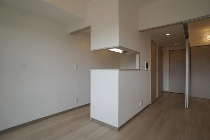住戸プランは、都心での合理的かつ快適な暮らしを求める単身者やDINKS層を強く意識した設計となっています。システムキッチンや独立洗面台、浴室乾燥機、エアコンといった専有部設備が標準的に備えられており、日常生活の質をしっかりと支えます。特にキッチン周りは作業動線が考慮されており、自炊派の方でもストレスなく利用できる仕様です。また、収納スペースも適切に確保されているため、都心生活で増えがちな荷物をすっきりと整理できます。居室は家具配置の自由度が高く、テレワーク用のデスクスペースを確保しやすい点も現代的なニーズに合致しています。限られた専有面積の中で「狭さ」を感じさせない工夫が随所に施されており、実用性と居住快適性を重視する方にとって非常にバランスの取れた住戸構成となっています。