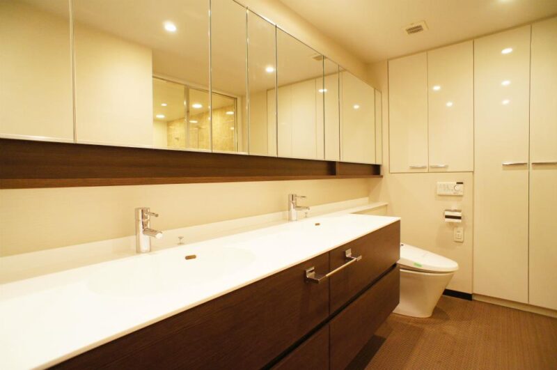 バスルームには追焚機能付きオートバスと浴室乾燥機を完備。帰宅時間が不規則になりがちなビジネスパーソンでも、常に快適な入浴環境を保つことができ、雨天時の洗濯にも重宝します。独立洗面台は収納力と使い勝手を重視した設計で、朝の身支度や帰宅後のリラックスタイムをスムーズにサポート。トイレには温水洗浄便座を採用し、衛生面にも配慮されています。