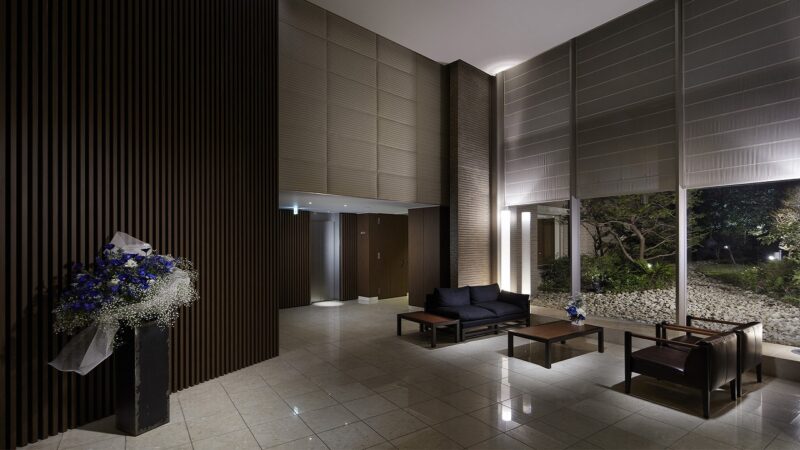 建物内部は内廊下設計となっており、外気の影響を受けにくく、ホテルライクで落ち着いた雰囲気を演出。雨風にさらされることなく住戸へアクセスできる点は、日常の快適性を大きく高める要素です。エレベーターは居住戸数に配慮した台数が確保されており、通勤・通学時間帯の混雑を緩和する設計となっています。