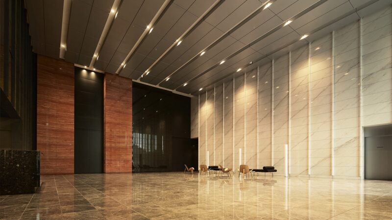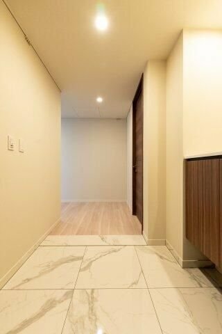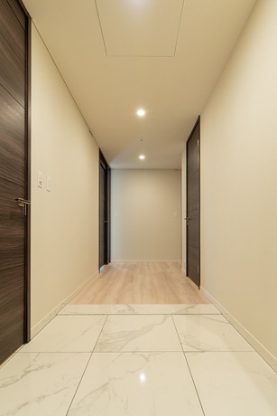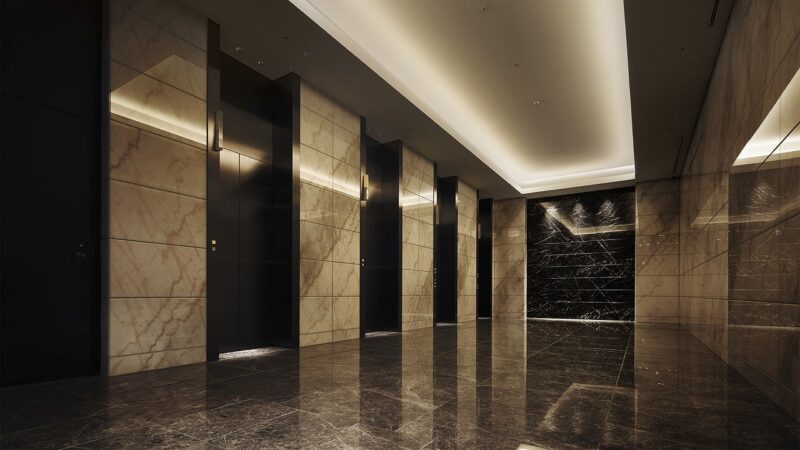 また、エントランスは来客対応を意識した設計となっており、居住者だけでなくゲストにも好印象を与える空間構成が採用されています。エントランスから共用部へと続く動線は、プライバシーと開放感のバランスが取れており、都心の高級賃貸にふさわしい品格を感じさせます。