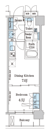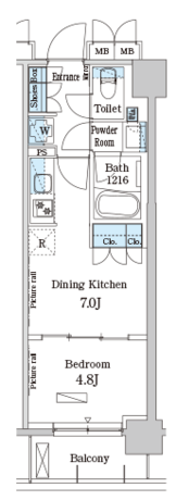 住戸プランは、都市型ライフスタイルに最適化された合理的かつ機能的な設計が施されています。システムキッチン、独立洗面台、浴室乾燥機、温水洗浄便座、エアコンといった専有部設備が標準的に整い、入居後すぐに快適な生活をスタートできる仕様です。収納スペースも確保されており、限られた専有面積を有効活用できる設計がなされています。単身者やDINKS層を想定した間取りは、在宅ワークにも対応しやすく、生活と仕事を無理なく両立可能。シンプルで洗練された内装は、家具やインテリアの自由度も高く、自分らしい空間づくりを楽しめる点も魅力です。