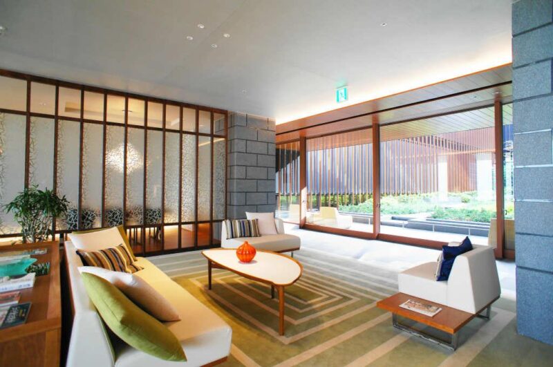 本物件は、三井不動産レジデンシャルが展開するパークアクシスシリーズの中でも、上位グレードに位置付けられる「プレミア」仕様を採用しており、外観および共用部の完成度は非常に高水準です。建物ファサードは、日本橋という歴史ある街に溶け込む落ち着いた色調と素材感をベースにしつつ、現代的なシャープさを兼ね備えたデザインとなっています。エントランスホールはホテルライクな空間演出が施され、照明計画や素材選定に至るまで細部へのこだわりが感じられます。共用廊下やエレベーターホールも私邸感を意識した設計となっており、日々の帰宅動線そのものが上質な体験へと昇華されています。これらの共用空間は単なる装飾ではなく、住まう人の心理的満足度や誇りを高める重要な要素として機能しています。