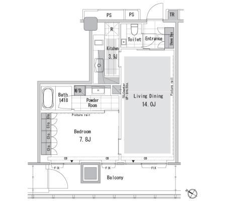 専有部の設計においても、本物件は都心居住者のライフスタイルを深く理解したつくりとなっています。主にシングル・DINKS層を想定したプランニングがなされ、限られた専有面積の中でも快適性と機能性を最大限に引き出す工夫が随所に見られます。柱の張り出しを抑えた整形プラン、家具配置を想定した動線設計、十分な収納スペースの確保など、日常生活でのストレスを軽減する配慮が徹底されています。また、システムキッチンや独立洗面台、浴室乾燥機といった設備も高品質なものが採用され、分譲マンションに近い居住水準を実現しています。住戸内は単なる「寝に帰る場所」ではなく、在宅ワークやプライベートタイムを快適に過ごすための拠点として高い完成度を誇ります。
