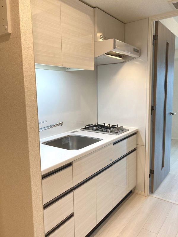 キッチンには機能的なシステムキッチンを採用し、自炊派にも嬉しい設備仕様となっています。作業スペースが確保されていることで調理効率が高まり、収納力のあるキャビネットが生活感を抑えた空間づくりを可能にします。さらにクローゼットや室内洗濯機置場が設けられ、生活動線が整理された設計が特徴です。エアコンも設置済みのため、入居後すぐに快適な室内環境を整えられる点も大きな魅力です。