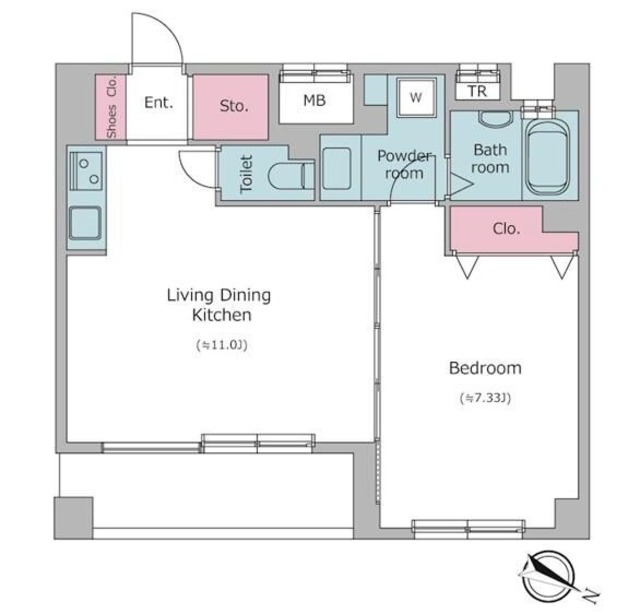 また、収納スペースも適切に確保されており、衣類や生活用品をすっきりと整理することが可能です。室内はシンプルで落ち着いたデザインが採用されているため、どのようなインテリアにも合わせやすく、自分らしい空間づくりを楽しむことができます。都心での生活は利便性が高い反面、住空間がコンパクトになりがちですが、本物件では機能性を重視した設計により快適な居住空間が実現されています。