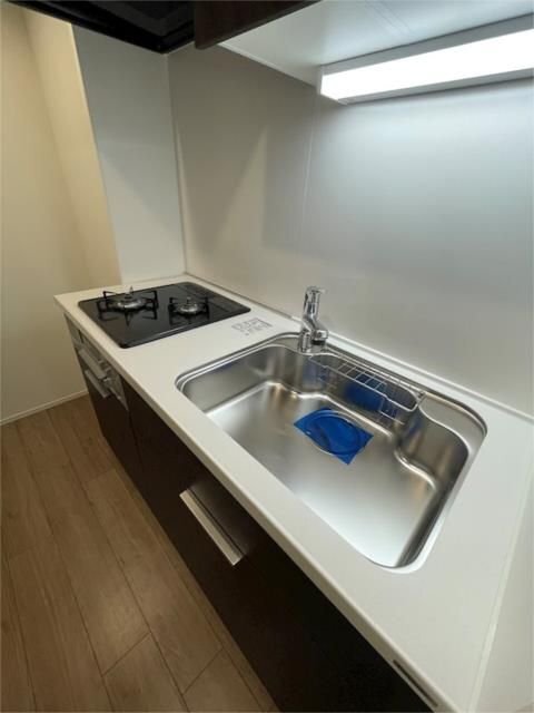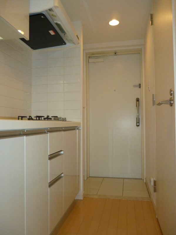 レジディア築地の専有部には、都市生活を快適にするための充実した室内設備が整えられています。まずキッチンには使い勝手の良いシステムキッチンが採用されており、ガスコンロを備えているため料理がしやすく、自炊を日常的に行う方にも便利な仕様となっています。調理スペースや収納も確保されているため、キッチン用品や食材の整理もしやすく、機能性とデザイン性を兼ね備えた空間となっています。