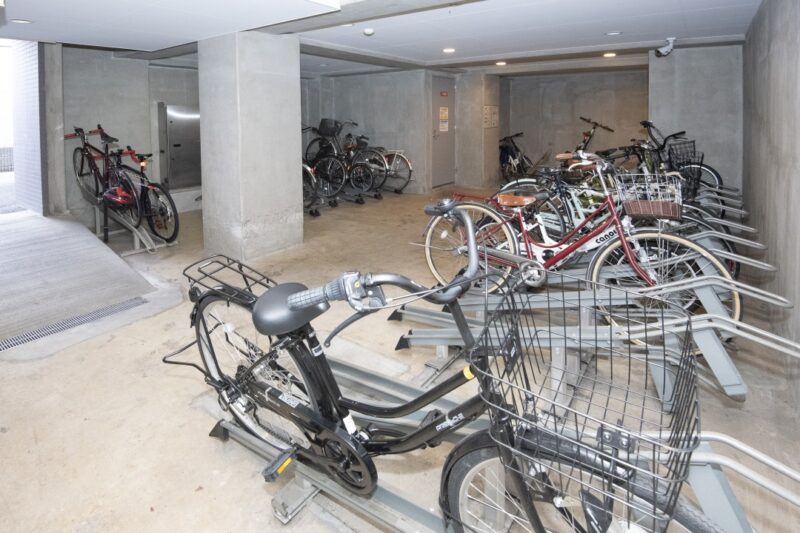 また、宅配ボックスが設置されているため、不在時でも荷物の受け取りが可能であり、忙しい方やネットショッピングを頻繁に利用する方にとって非常に便利な設備です。メールボックスやエレベーターも備えられており、日常生活の動線がスムーズに設計されています。さらに駐輪場も用意されており、自転車を利用した移動にも対応しています。こうした共用設備は、居住者の日常を支えるだけでなく、快適でストレスの少ない暮らしを実現するための重要な要素となっており、都市型マンションとしての完成度の高さを感じさせます。