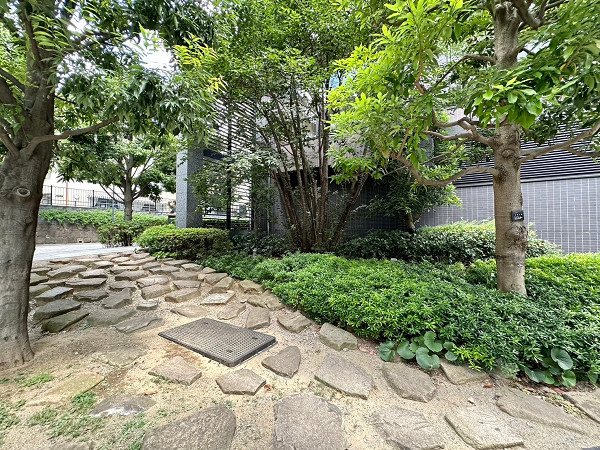 - 敷地内にも公開空地や植栽を配置