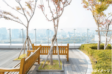 共用部には、住まう人が誇りを感じるような上質な空間と多彩な設備が整っています。エントランスホールは吹き抜け構造で開放的なデザインが施され、大理石調の床材と温かな間接照明が高級ホテルのような雰囲気を醸し出します。居住者専用のラウンジスペースでは、待ち合わせや読書など静かに過ごすことができ、ゲストルームも備えられており来客時にも重宝します。24時間利用可能な宅配ボックスやメールコーナーは忙しい都市生活を支え、また駐車場・駐輪場・バイク置場なども十分な台数を確保。エレベーターは複数基設置され、スムーズな動線を確保しています。内廊下設計によりプライバシーを守りつつ、快適な動線設計を実現。清掃・管理も徹底され、常に清潔で静謐な雰囲気が保たれています。都市の中心にありながら、まるでリゾートホテルのような安らぎと品格が漂う共用空間です。