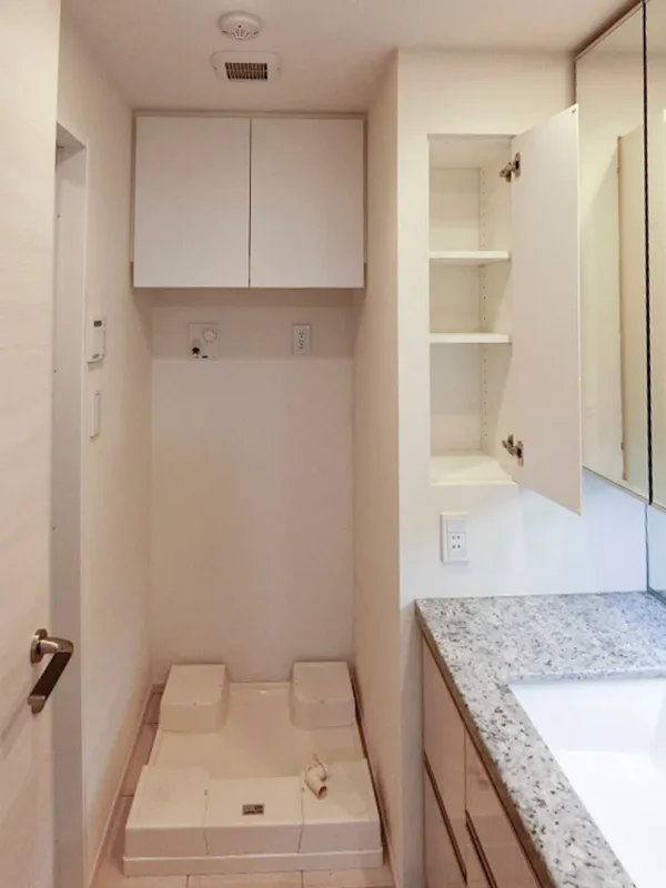 アトラス市ヶ谷の専有部は、都市型ライフスタイルにふさわしい上質な設備と洗練されたデザインで構成されています。まず全住戸が角部屋となっており、開放的な採光と通風を実現。内廊下設計の採用により、共用部から各住戸までのアプローチは静かでプライベート性が高く、まるで高級ホテルに帰宅するような感覚を味わえます。室内には、収納力の高いウォークインクローゼットやシューズインクローゼットを備え、無駄のない生活動線を実現。キッチンはカウンター型で、使い勝手とデザイン性を両立させた仕様。高品質なタイル貼りの内装は、落ち着いた色調で統一され、居住空間全体に一体感を生み出しています。また、全室にエアコンや床暖房が完備されており、四季を通じて快適な住環境を確保。防犯面でもオートロックと防犯カメラを併用し、安全性を高めています。さらにメールボックスや宅配ボックスを備え、不在時の荷物受け取りにも対応。機能性と審美性が融合した、旭化成不動産レジデンスならではの完成度を誇る住空間です。