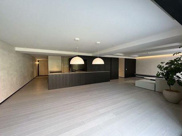 ウッドヴィル麻布の住戸は、その多くが150㎡〜200㎡超の大空間を誇ります。3LDK〜4SLDKといったゆとりある間取り構成が中心で、リビング・ダイニングは天井高があり、窓面が広く取られているため、開放感と採光性が抜群。特に南向きの住戸では日中の自然光が柔らかく差し込み、まるで邸宅のような豊かな時間を演出します。内装はリノベーションによってモダンに一新され、無垢材フローリングや白基調の壁面、最新のキッチン設備が整うなど、現代のライフスタイルに完全対応。ファミリー層や外国人居住者にも快適な広さと動線が確保されています。リビングから望む中庭の緑はまさに癒しの風景であり、静寂と光に満ちた日々がここにはあります。