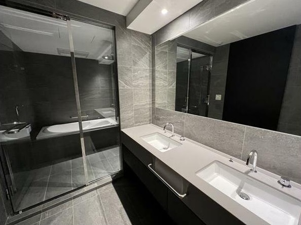 ウッドヴィル麻布の住戸に一歩足を踏み入れると、まず感じるのは、リノベーションによって蘇った現代的な美しさと、時を超えた上質な静けさの共演です。内装は無垢材のフローリングと白を基調とした壁面で統一され、柔らかな自然光を反射して空間全体を包み込みます。キッチンにはビルトインタイプの最新家電が設置され、食洗機・オーブン・冷蔵庫などがシームレスに組み込まれています。水回りも洗練されており、バスルームは天然石を用いた広々とした設計。ガラスパーティションによる開放感があり、まるで高級ホテルのような寛ぎを味わえます。また、冷暖房は全居室に完備され、床暖房を採用している部屋も多く、季節を問わず快適な室温を保ちます。遮音性の高い二重サッシや厚い戸境壁も採用されており、都心とは思えない静寂を叶える空間設計です。住まう人の日常に、贅沢ではなく「本物の豊かさ」を届ける、それがウッドヴィル麻布の専有部の真価です。