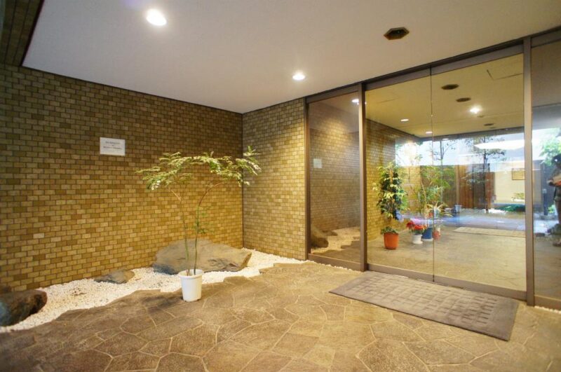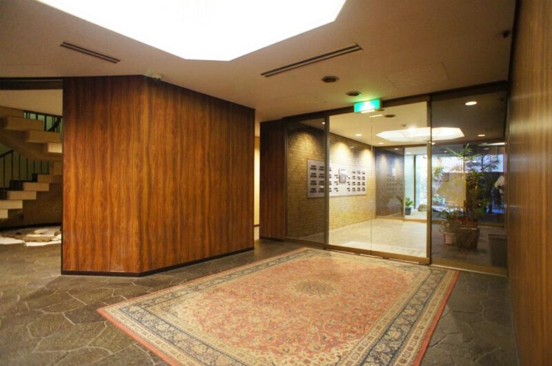 外観はブラウン系の落ち着いたタイルを基調に、時を経ても色褪せない重厚な存在感を放っています。エントランスは広々とした庇を備え、来訪者を穏やかに迎え入れる構え。敷地内には四季折々の植栽が施され、桜や常緑樹が織りなす風景が居住者の心を潤します。外観の設計思想は「森に包まれる邸宅」。建物と自然が一体となるよう計算されたバランスが見事で、室内にいても緑が感じられる構成となっています。内部の共用空間も贅沢で、石材や木材を多用したインテリアは落ち着きと温もりを兼ね備え、ホテルライクな空気感を醸成。高級住宅街・西麻布の中でも、ヴィンテージ特有の深みとモダンな洗練が同居する希少な一棟です。