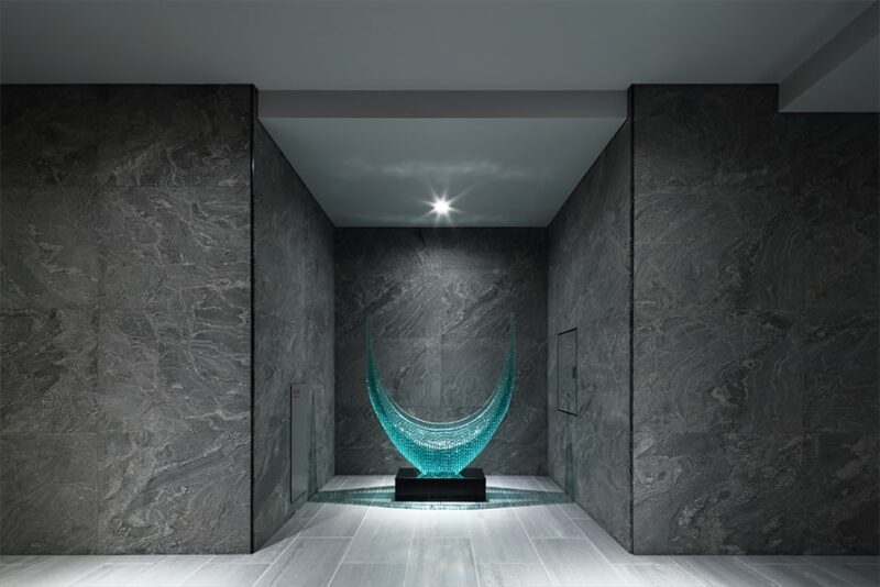 さらに、内廊下設計によりホテルライクな静けさと品格が漂い、共用部分の素材にも高級感ある石材や金属パネルが使用されています。これらすべてが「プラウド」の哲学——“住まうこと自体が誇りになる”を体現しており、この邸宅に息づく美学をより深く感じさせます。