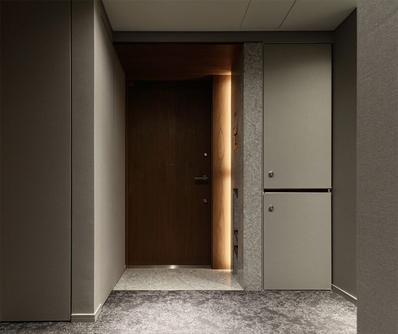 共用部分の照明は暖色系で統一され、夜間には柔らかな光がエントランスを包み込み、邸宅としての品位を際立たせます。まさに「静かなる贅沢」を体現した共用空間といえるでしょう。