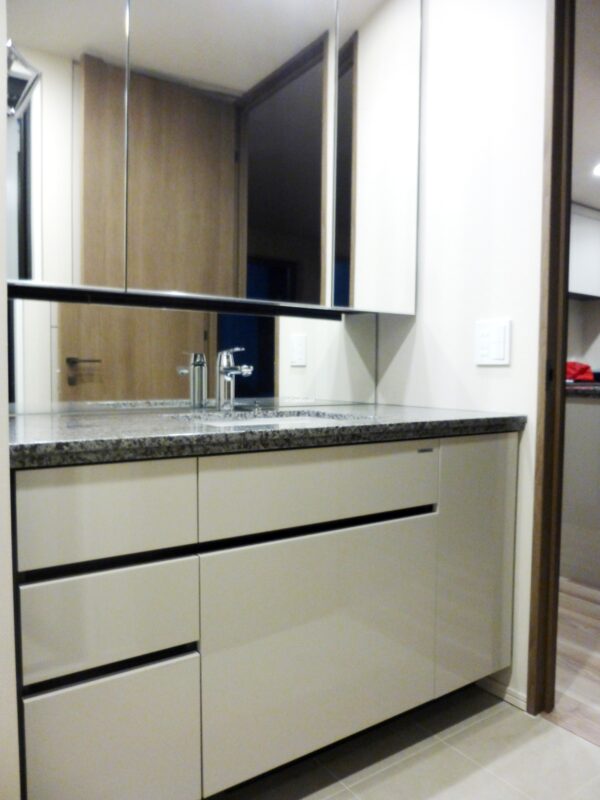収納面では、ウォークインクローゼットやシューズボックスなどが豊富に設けられ、都市生活で不足しがちな収納スペースをしっかり確保。可動棚や奥行きのある収納により、整理整頓がしやすい住まいが実現します。独立洗面所や室内洗濯機置き場など、生活を無理なく整えられる設備も魅力。分譲基準の静音性・断熱性も確保されており、暮らしの質を高めたい方にふさわしい仕様が揃っています。