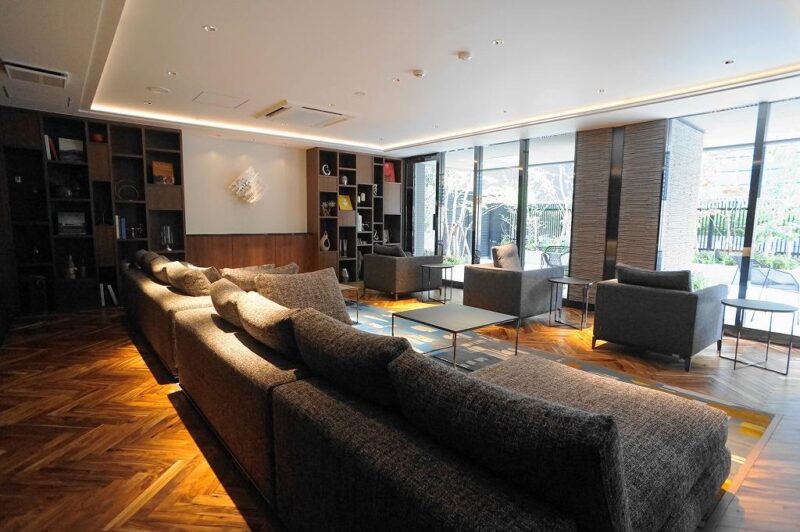 共用ラウンジはホテルのような落ち着いた空間で、来客の待合や読書、簡単なワークスペースとしても利用可能です。エントランスホールに続く上質なラウンジは、マンション全体のステータス性を象徴する存在であり、実際に住む人の満足度を大きく高めてくれるポイントです。また、24時間利用可能なゴミ置き場やスムーズな宅配受け取りをサポートする宅配ボックスといった「日常を支えるサービス設備」も非常に重要な役割を果たしています。