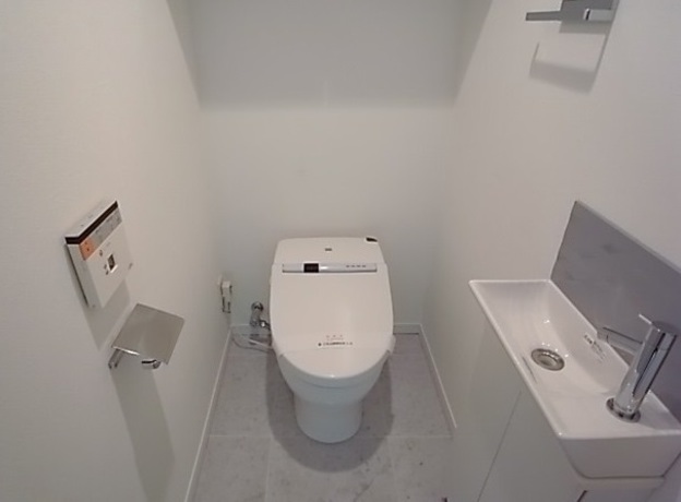 水回り設備も非常に充実しており、独立洗面台は身支度や帰宅後の動線をスムーズにし、朝夕の忙しい時間帯でもストレスを感じさせません。バス・トイレ別仕様に加え、浴室には浴室乾燥機を備えているため、天候に左右されず洗濯ができる点も都市生活において大きな利点です。追い焚き機能(住戸により)も用意され、ゆったりとしたバスタイムを日常の中に取り込むことができます。
