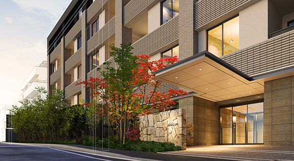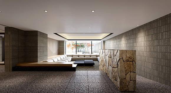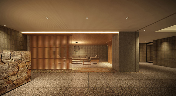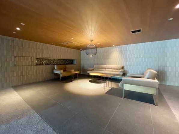 - エントランス:木目調格子やラウンジ空間を採用